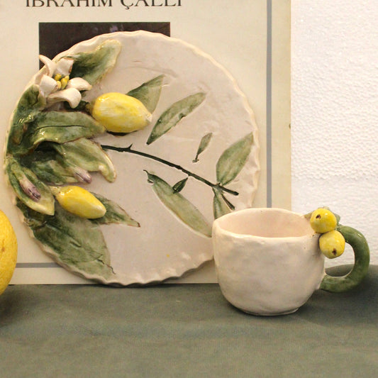 LİMON Desenli Rölyef Takım– El Yapımı Seramik Tabak-Fincan