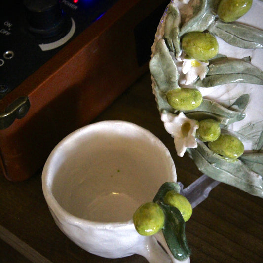 ZEYTİN Desenli Rölyef Takım– El Yapımı Seramik Tabak-Fincan